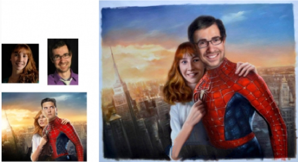 If you want a portrait of different people painted together or a different background but don't have one suitable photo then I can compose a portrait from several different photos. The folks in the photo need to be in a similar pose and preferably looking straight into the camera. Send me the photos, tell me what size of portrait you'd like and I'll send you a quote within 48 hours of receiving your photos. Please see How Do I Upload My Photos?